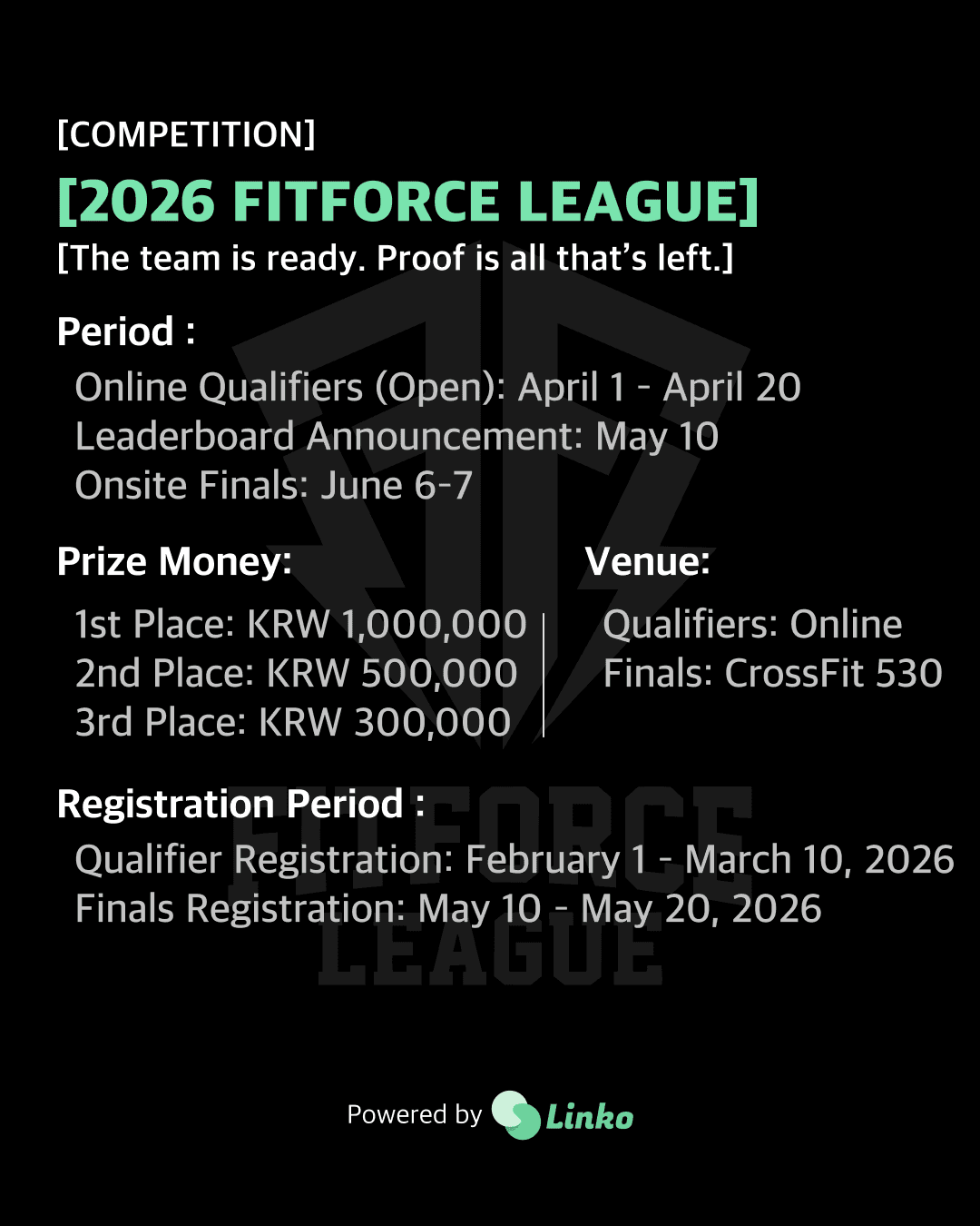 핏포스리그 본선 96진출팀 중 한팀에게 추첨을 통해서 컨셉트 스트렝스에르그를 드립니다.